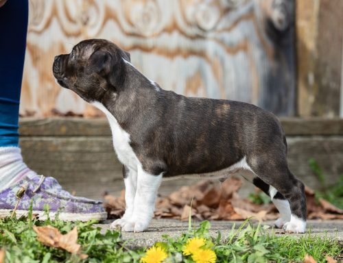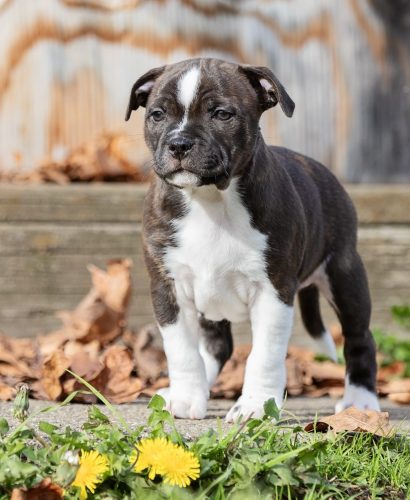 Dexter is the newest member of the RouStaff family – He is my first ever male Stafford! He comes from our litter from Wednesday and Otis.  He was love at first sight and I am so thrilled he was one of the top picks in the litter! I am excited about what the future holds for him.